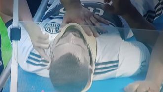 El lateral izquierdo de Olimpia, Miguel Samudio, fue retirado en ambulancia del superclásico. El jugador padeció un choque de cabezas.