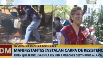 Los manifestantes por las ollas populares instalaron la carpa de la resistencia para exigir el veto del proyecto de ley de