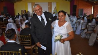 En Tavaí, 115 parejas formalizaron su unión en una boda comunitaria, destacando una historia de amor que esperó 48 años para llegar al altar.