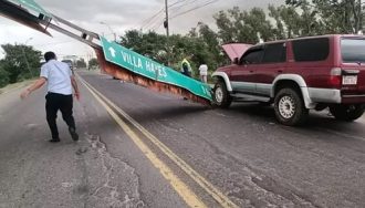 Una familia fue víctima de un accidente al bajar el puente Remanso, cuando un cartel del MOPC se desplomó y causó lesiones a la madre.