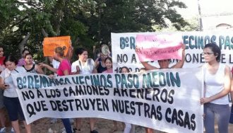 En la mañana de este sábado un grupo de vecinos se manifestó sobre la avenida principal de la ciudad de Villa Elisa para exigir que clausuren la arenera y la planta asfáltica ubicada en el Puerto Medín.