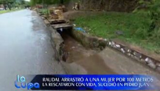 Una mujer que estaba a bordo de una motocicleta camino a su casa con sus dos hijos menores, fue arrastrada por el raudal hasta una cuneta. Ocurrió el viernes en Pedro Juan Caballero, Amambay.