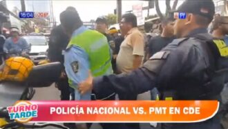 En un incidente que ha sorprendido a Ciudad del Este, agentes de la PMT y la Policía Nacional se enfrentaron en plena vía pública. Un desacuerdo sobre la colocación de un cepo en un vehículo habría sido el detonante.