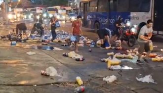 La caída de bebidas desde un camión en Fernando de la Mora fue aprovechada por vecinos y transeúntes, generando un saqueo en plena ruta.