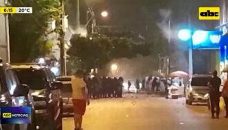Parte de la hinchada de Luqueño iba a llegar hasta donde estaban los hinchas de Libertad, por lo que la Policía Nacional impidió el avance de estas personas. Ocurrió en la noche del lunes luego del partido.
