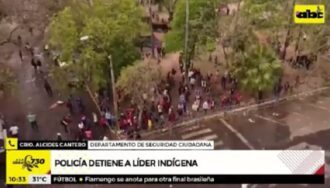 Agentes de la Policía Nacional detuvieron a uno de los líderes de la manifestación de los indígenas, por lo que se generaron nuevos enfrentamientos en las cercanías del Congreso Nacional.