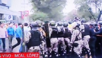 Los taxistas que se manifiestan frente a la Municipalidad de Asunción cerraron por completo la avenida Mariscal López.