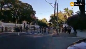 Policías cerraron el paso a manifestantes para que no lleguen hasta el Mburuvicha Róga y así protestar contra las restricciones.