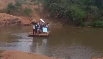 Alumnos de la comunidad indígena Pikykua, Amambay, arriesgan sus vidas cruzando el río Aquidabán en balsa para llegar a la escuela. El puente que les daba acceso fue destruido hace un año y no ha sido reconstruido. La comunidad pide una solución urgente a las autoridades.