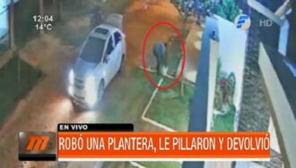 Un joven robó una plantera, pero posteriormente fue descubierto gracias a imágenes captadas por cámaras de seguridad y finalmente tuvo que devolverla el mismo día en el que se la llevó. Ocurrió en Coronel Oviedo, departamento de Caaguazú.