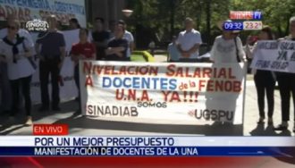 Este lunes, docente de la Universidad Nacional de Asunción se manifestaron frente al campus de la UNA, exigiendo aumento de sueldos. El Rectorado presentó un proyecto de nivelación salarial al Congreso Nacional.