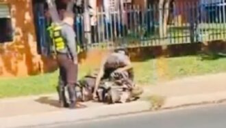 Un motociclista que fue interceptado por inspectores de la Patrulla Caminera durante un control de rutina en San Lorenzo, tiró su moto y tras golpearla varias veces, la quemó.