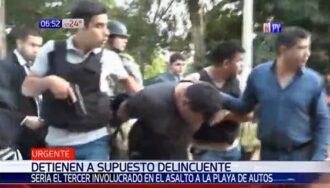Cuatro delincuentes asaltaron una playa de vehículos y que se llevaron una caja fuerte, en la madrugada de este lunes. La Policía Nacional logró detener a tres, uno de ellos es integrante de la Escolta Presidencial.