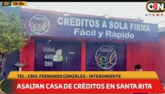 Dos delincuentes ingresaron a una financiera en el distrito de Santa Rita y se alzaron con cerca de G. 2 millones y teléfonos celulares.