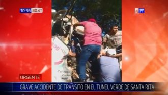 Un tracto camión rozó a otro, al intentar esquivar un automóvil mal estacionado, en el túnel verde de Santa Rita, sobre la Ruta PY06. Los conductores sufrieron heridas leves.