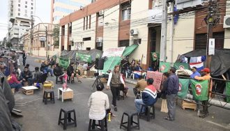 Integrantes del Movimiento Campesino Paraguayo siguen acampando frente al Indert desde hace más de un año, reclamando tierras prometidas en 2015.
