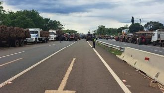Trabajadores de Mauricio José Troche protestan en el km 155 de la ruta PY02 pidiendo solución definitiva sobre tren de molienda paralizado hace dos años.