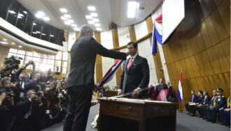 En una ceremonia protocolar, Mario Abdo Benítez concluyó formalmente su periodo presidencial, entregando la banda y el bastón de mando a Silvio Ovelar. Este acto dio inicio a la ceremonia de traspaso del poder ejecutivo a Santiago Peña.