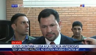 El exdiputado Ulises Quintana afirmó que es “un preso político” y que su arresto es obra de Javier Zacarías Irún. Esto lo manifestó, este lunes, antes de su declaración indagatoria ante la Fiscalía.